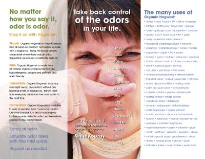 Don't just adjust to bad odors, erase them. Whether at home, work, or play, keep Organic Hogwash close and enjoy an instantly fresher environment.